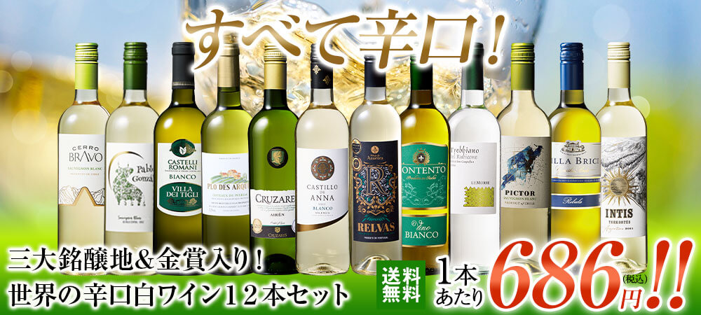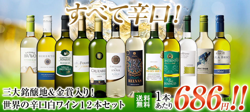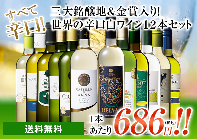 【49%OFF】三大銘醸地&金賞入り!世界の辛口白ワイン12本セット第65弾