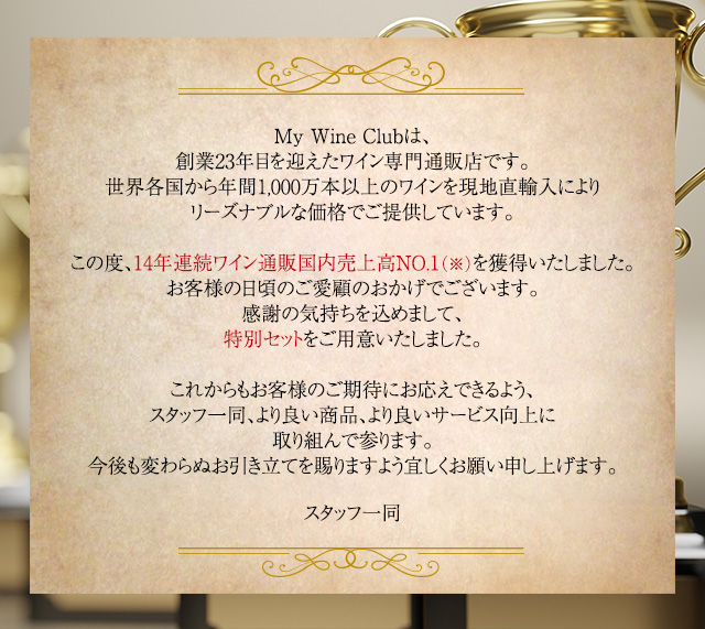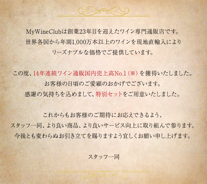 これまでもシャンパンセットはリピーターのお客様から支持を得て、あっという間に完売!多くのリクエストをいただき、第14弾のセレクトを開始!