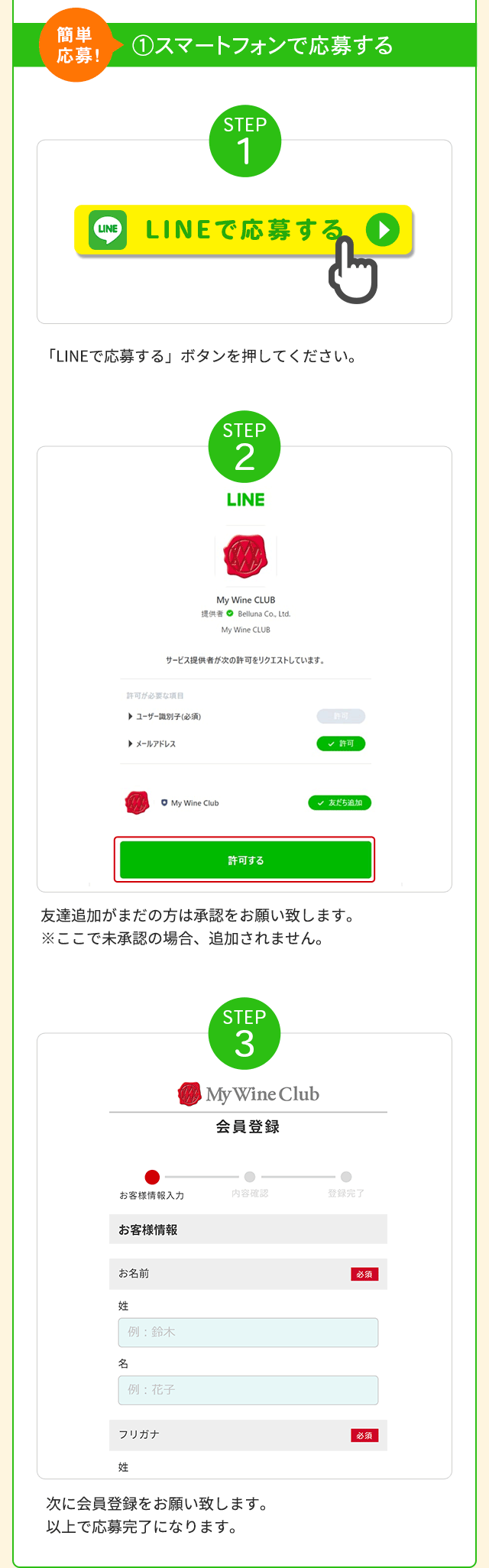 ※MyWineC l u bのパソコン・スマートフォンサイト以外でのご応募はお受けできません。