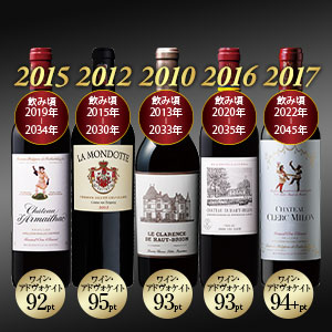 ボルドー上級クラスの赤ワイン5本希少な白入り!