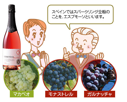 スペイン北東部、地中海沿岸のカタルーニャ地方のぶどうで主に造られているスパークリングワインです。シャンパーニュと同じ瓶内二次発酵製法で、品質とコストパフォーマンスの高さで、世界的に人気があります。カバとは、カタルーニャ語で洞窟を意味し、1872年から生産が始まりました。品種は、マカベオ、ビウラ、パレリャーダの3つが一般的で、ロゼのカバにはモナストレルやガルナッチャなどの使用が認められています。