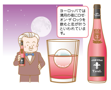 ロックとはもちろん氷のこと。ヨーロッパで、ワインに氷を入れるのはごく一般的です。ヨーロッパの夏は日本と違い乾燥しているので、水代わりにスイスイ飲めるオン・ザ・ロックが人気なんです。特によく飲まれるのがロゼ。やはり、氷を入れると薄まるので、白だと味気ないし、赤では渋味が立つ。そこでちょうど良いのがロゼというわけ。フランスでは白よりもロゼの消費の方が多く、全体の20%を超えるほどロゼが人気です。
