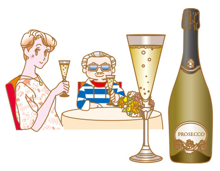 プロセッコはヴェネト州で造られるスパークリングワインで、別名「24時間のワイン」と呼ばれています。日本でスパークリングというと“お祝い”のイメージが強いですが、イタリアでは、プロセッコはごく日常的。日本でいう「とりあえずビール」以上に気軽なのが、「とりあえずプロセッコ」です。値段も手頃で、味も飲みやすい中辛口~辛口。ちょっと甘いのが飲みたい時は、グラスの中に角砂糖を1粒入れたりもするんですよ。