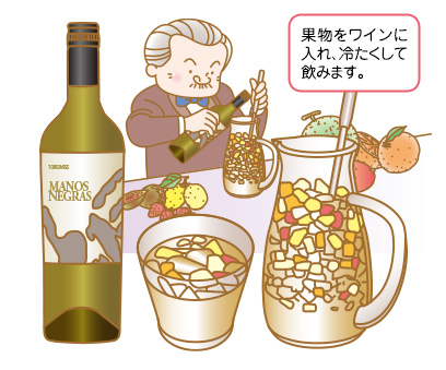 人が集まる時にみんなで作って飲むのが、クレリコです。ワインに生のフルーツをどっさり入れて冷やしたもので、南米ではとてもポピュラー。スペインのサングリアと似ていますが、クレリコは白ワインで作るのが一般的で、その時にあるフルーツを何でも入れてしまいます。甘くて飲みやすいので子供も飲みたがるようですが、口当たりが良すぎて、大人でもつい飲みすぎてしまい、早々に酔っぱらってしまうこともあるとか。