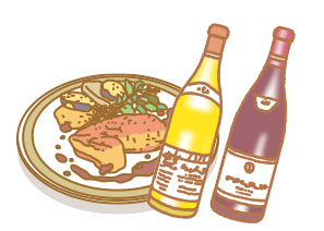 ボルドー・ソーテルヌ村で造られる濃厚な甘口の貴腐ワイン。ボルドーから南西地方にかけてはフォアグラの一大産地で、伝統的な組み合わせとして食べられていました。実践②のように、フォアグラのこってりとした脂を、貴腐ワインの濃厚な甘味で中和させるのです。また、同じボルドー地方の力強いフルボディの赤ワインは、タンニンがフォアグラの脂を流し、口の中を引き締めてくれる、ステキなマリアージュもあります。