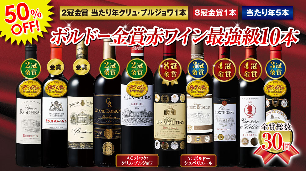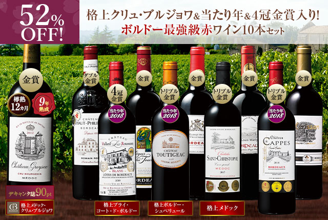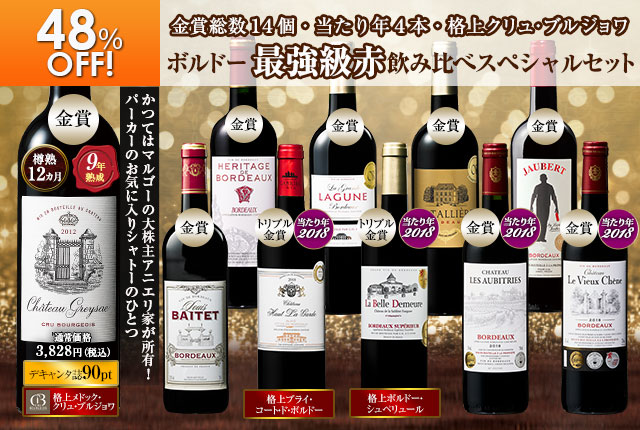 銘醸地ボルドー4本や当たり年が入った豪華バラエティセット!