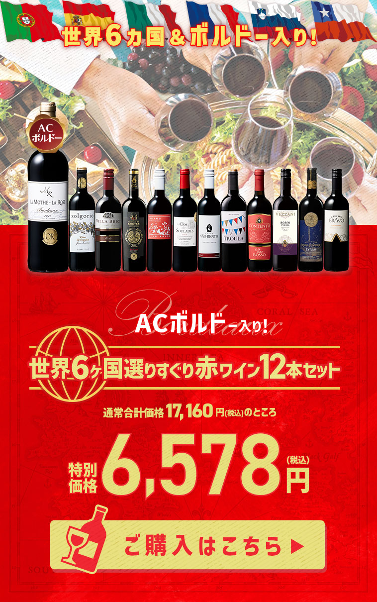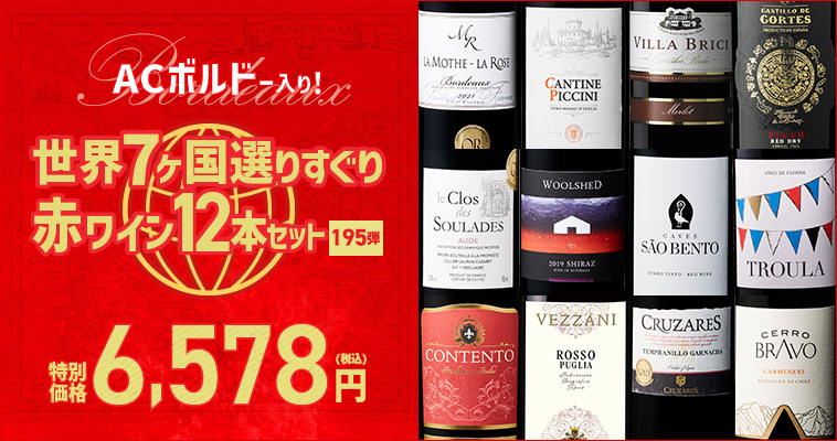 【特別送料無料】3大銘醸地入り!世界選りすぐり赤ワイン12本セット 第195弾