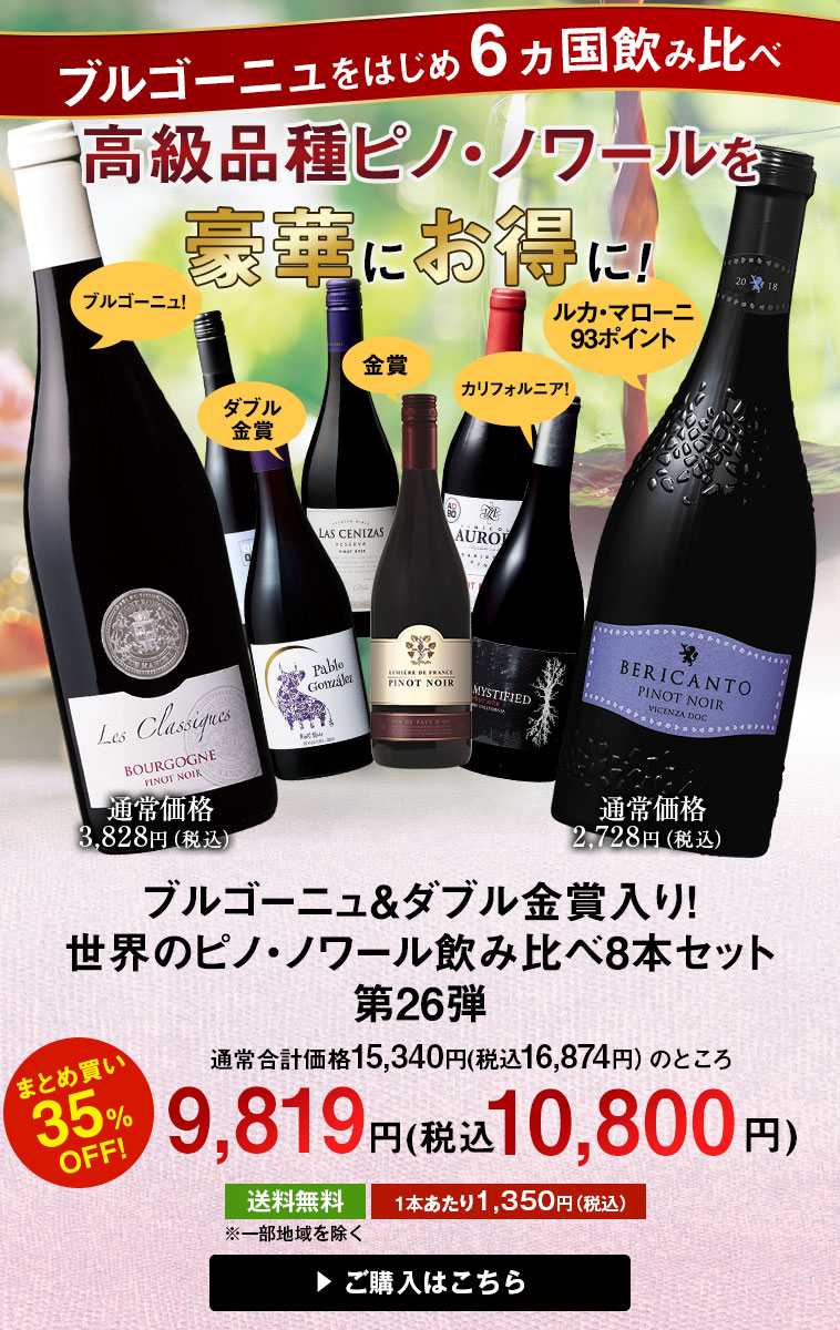 ブルゴーニュ&金賞入り!世界のピノ・ノワール飲み比べ8本セット 第26弾