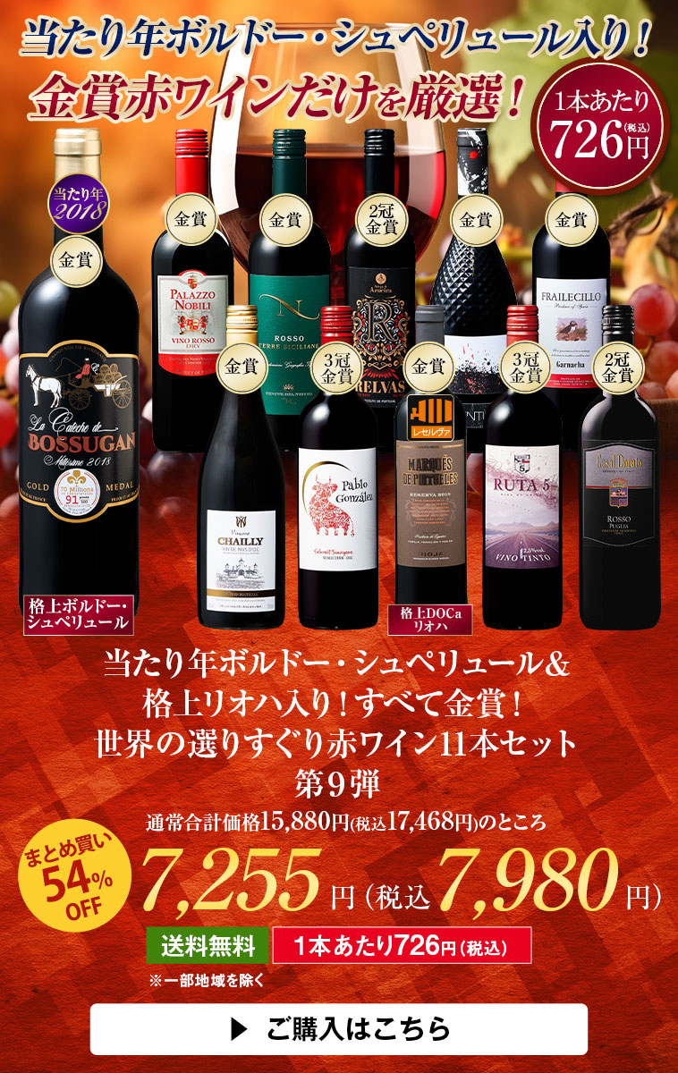 • 当たり年ボルドー・シュペリュール&格上リオハ入り!すべて金賞!世界の選りすぐり赤ワイン11本 第9弾