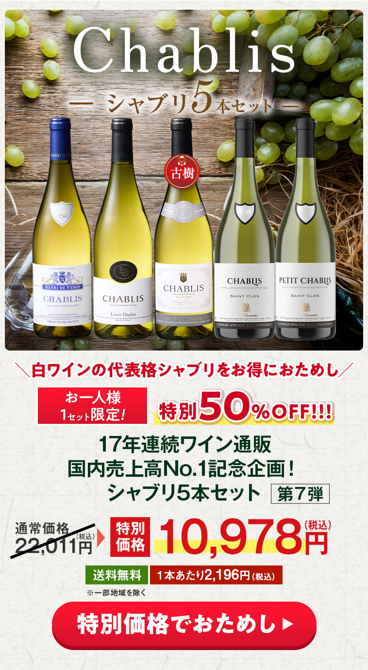 17年連続ワイン通販国内売上高No.1記念企画!シャブリ5本セット第8弾