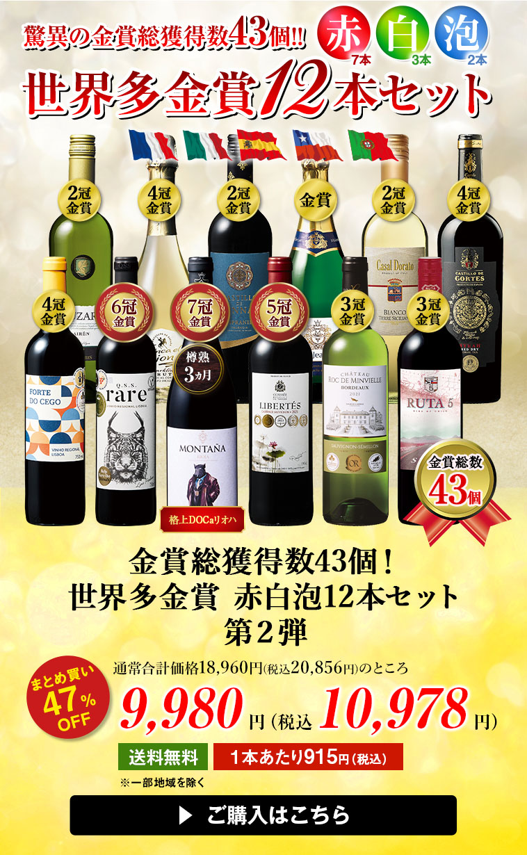 金賞総獲得数43個!世界多金賞赤白スパークリングワイン12本セット第2弾