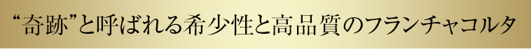フランスのシャンパーニュやスペインのカヴァと同じように、北イタリアのフランチャコルタ地域内で、瓶内二次発酵方式(メトド・クラシコ)で造られるスパークリングワインだけがフランチャコルタと呼ばれます。呼称には長い歴史があり、11世紀にやってきたクリュニー会修道士たちがこの領地は?せた土地で関税を課せられない「クルテス・フランケ関税免除の領地」と呼んだことが由来と言われています。フランチャコルタには、ぶどうの品種や最大収穫量、手摘み収穫、最低瓶内熟成期間はシャンパーニュより長い18ヵ月など厳しい規定があります。その規定を守って造られる品質の良さは「フランチャコルタの奇跡」と呼ばれ、「人生の喜びに満ちている」と表現される芳醇な香りと繊細かつフルーティな味わいは、世界中の著名人やセレブから絶大な支持を得ています。