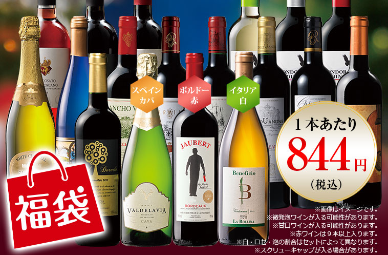 ボルドー赤・イタリア白・スペインのカバの各1本(計3本)が必ず入ります