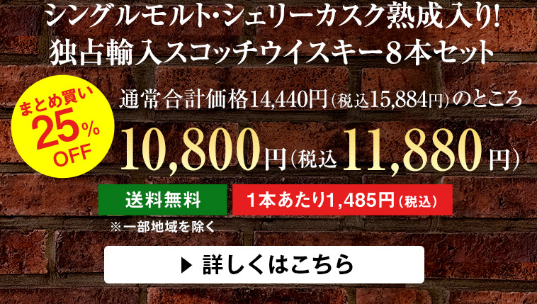 シングルモルト・シェリーカスク熟成入り!独占輸入スコッチウイスキー8本セット