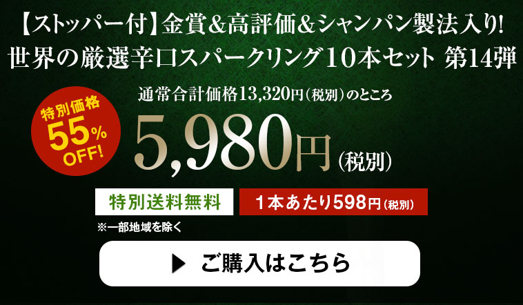 【特別送料無料】【ストッパー付】金賞&高評価&シャンパン製法入り!世界辛口スパークリング10本14弾