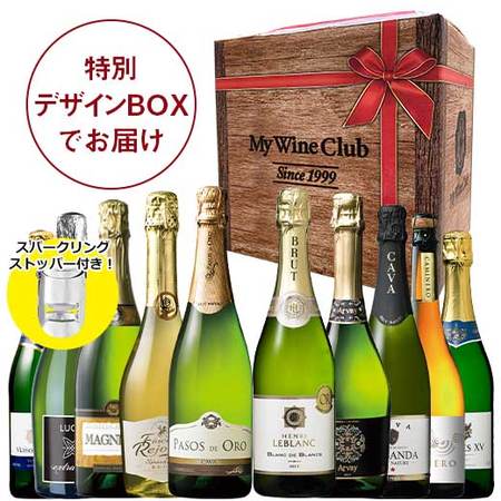 【ワイン12本用デザイン箱】【特別送料無料】【ストッパー付】世界の厳選辛口スパークリング10本30弾