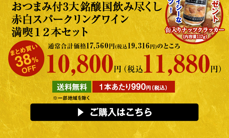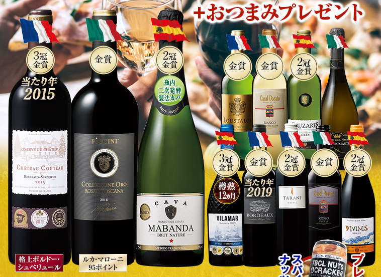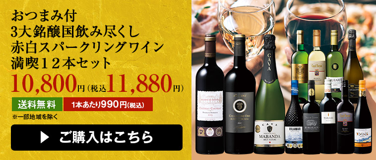 おつまみ付3大銘醸国飲み尽くし赤白スパークリングワイン満喫12本セット