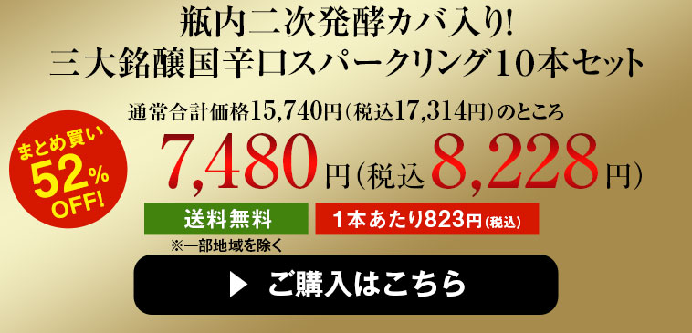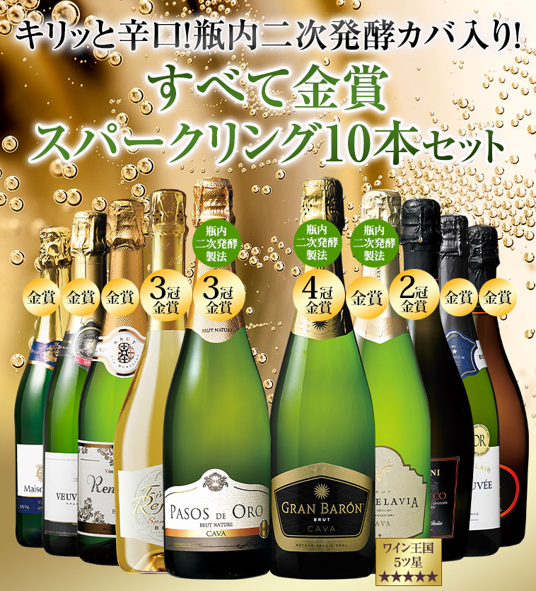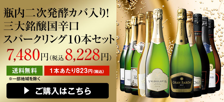 瓶内二次発酵カバ入り!三大銘醸国辛口スパークリング10本セット