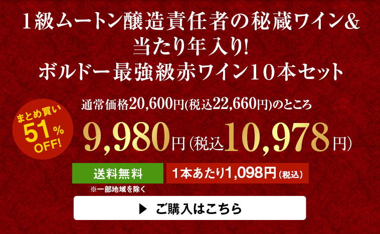 【51%OFF】1級ムートン醸造責任者の秘蔵ワイン&当たり年入り!ボルドー最強級赤10本セット