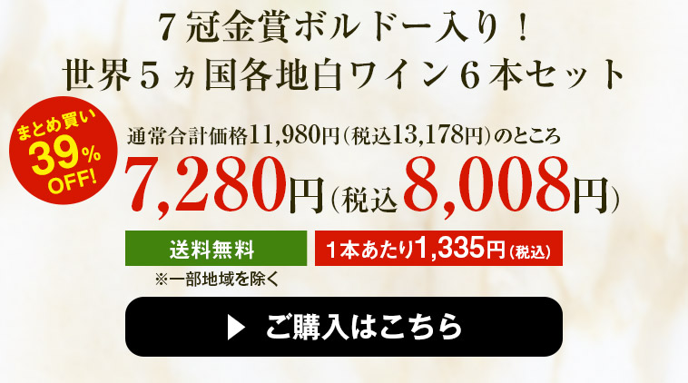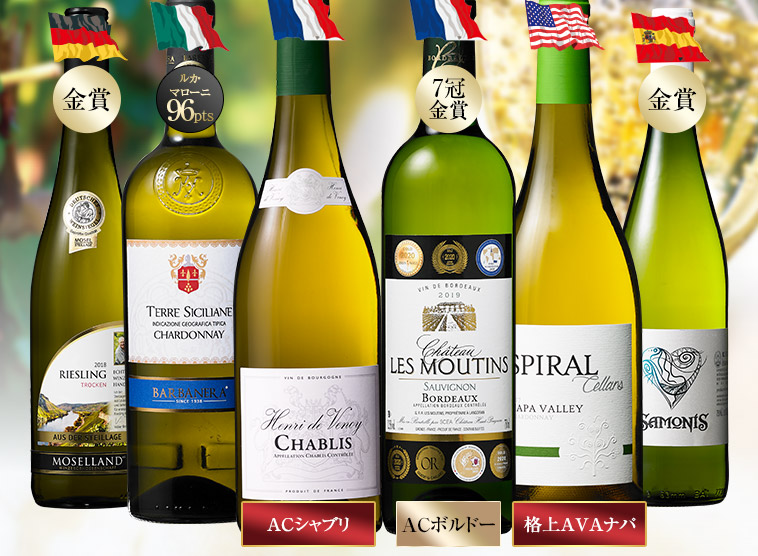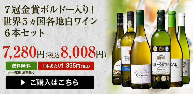 【39%OFF】7冠金賞ボルドー入り!世界5ヵ国各地白ワイン6本セット