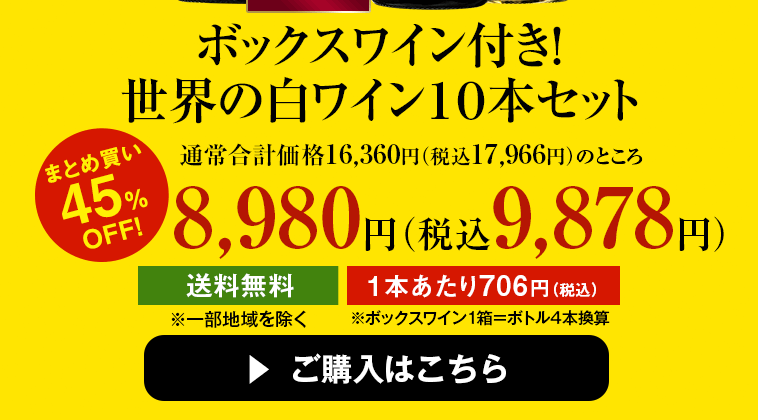 【45%OFF】ボックスワイン付き!世界の白ワイン10本セット
