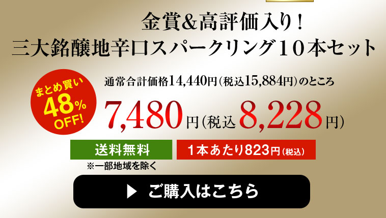 【48%OFF】金賞&高評価入り!三大銘醸地辛口スパークリング10本セット