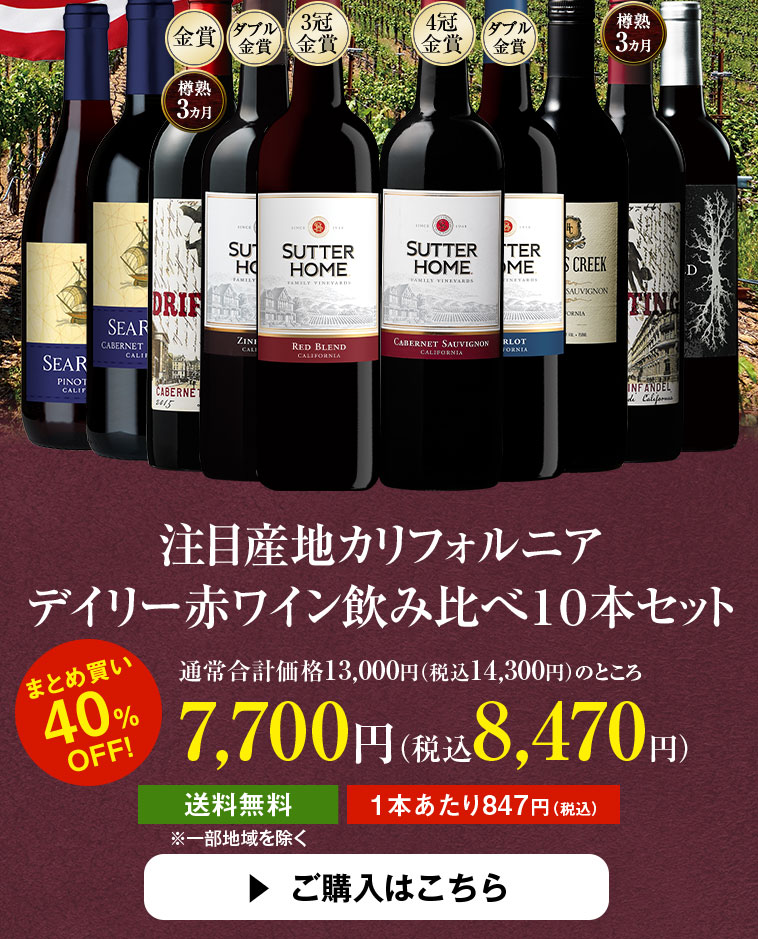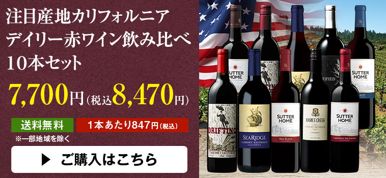 注目産地カリフォルニア デイリー赤ワイン飲み比べ10本セット