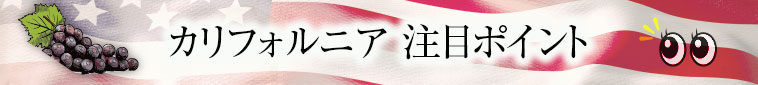 ノースコースト、セントラルコースト、シエラフットヒル、セントラル・ヴァレー、サウスコーストに区分されます。高級ワインの産地、ナパ・ヴァレー、ソノマ・ヴァレーはノースコートに位置します。