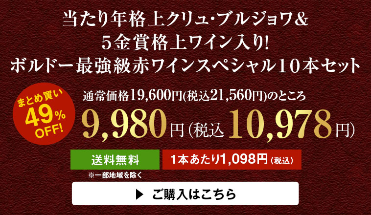 【49%OFF】当たり年格上クリュ・ブルジョワ&5金賞格上ワイン入り!ボルドー最強級赤ワイン10本