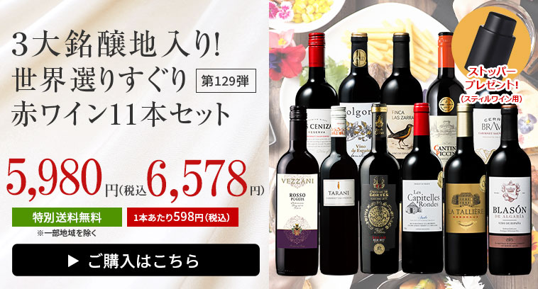 【特別送料無料】3大銘醸地入り!世界選りすぐり赤ワイン11本セット 第129弾