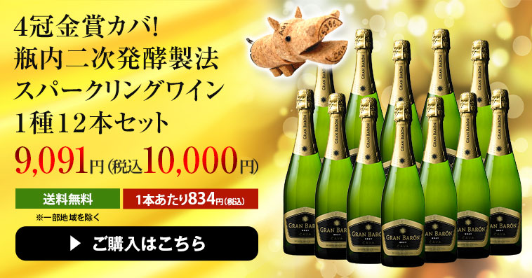 【45%OFF】4冠金賞カバ!瓶内二次発酵製法スパークリングワイン1種12本セット
