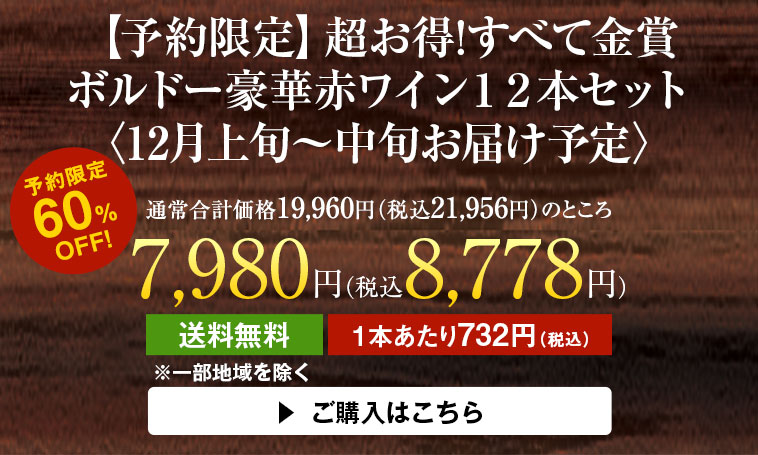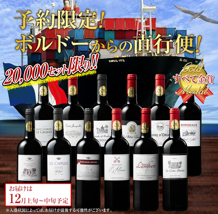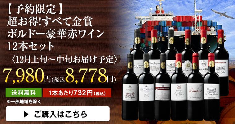 【予約限定】超お得!すべて金賞ボルドー豪華赤ワイン12本セット 【12月上旬から中旬お届け】