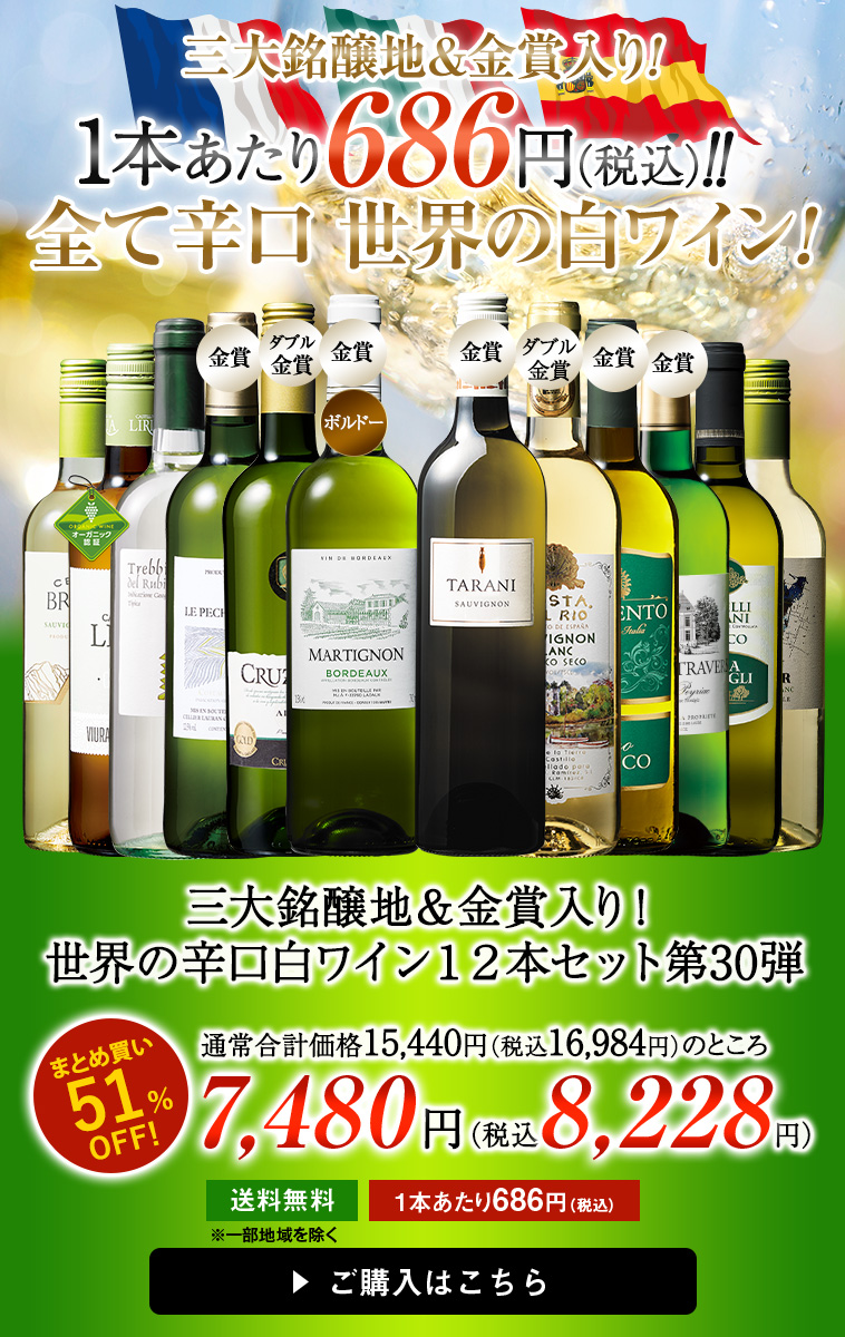 【51%OFF】三大銘醸地&金賞入り!世界の辛口白ワイン12本セット 第30弾
