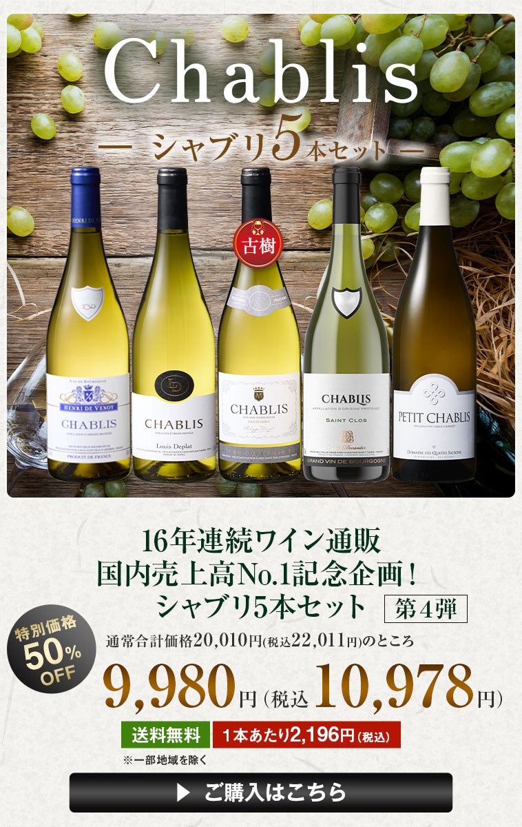 16年連続ワイン通販国内売上高No.1記念企画!シャブリ5本セット第4弾