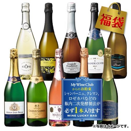 シャンパーニュ、クレマン、ロゼカバなどの瓶内二次発酵製法が必ず1本入ります!