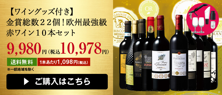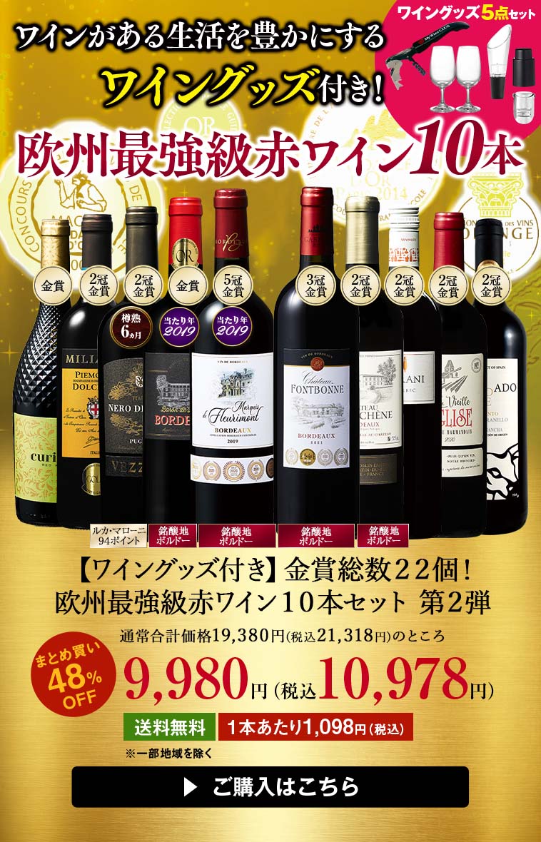 【ワイングッズ付き】金賞総数22個!欧州最強級赤ワイン10本セット第2弾