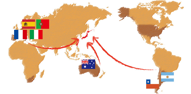 三大銘醸国フランス・イタリア・スペインを含む世界7ヵ国から