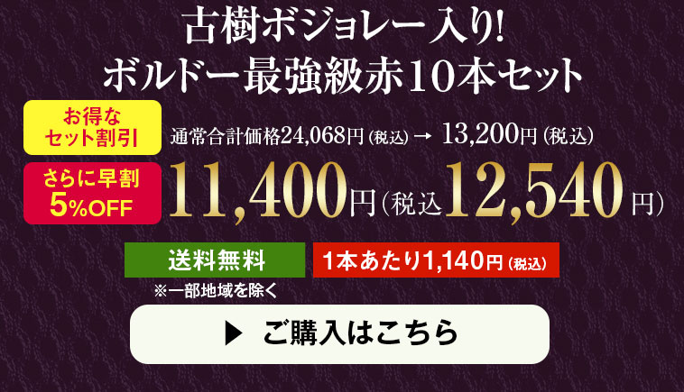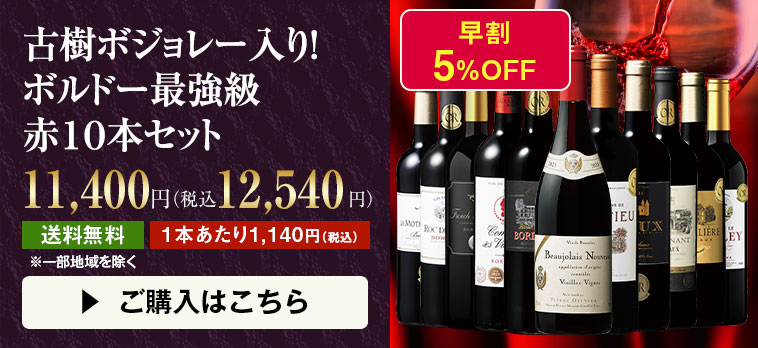 【早割】古樹ボジョレー入り!ボルドー最強級赤10本セット