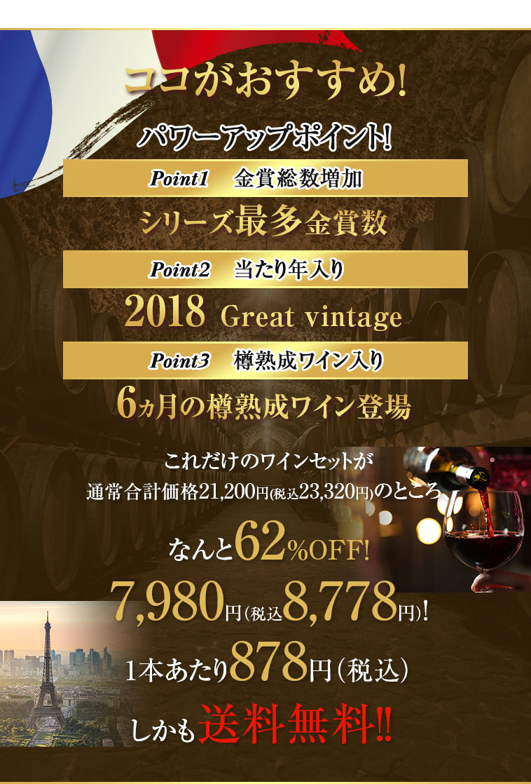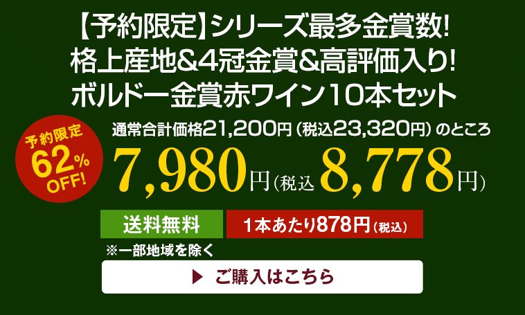 ボルドー金賞ワインがこれだけ揃って1本あたり878円(税込)!