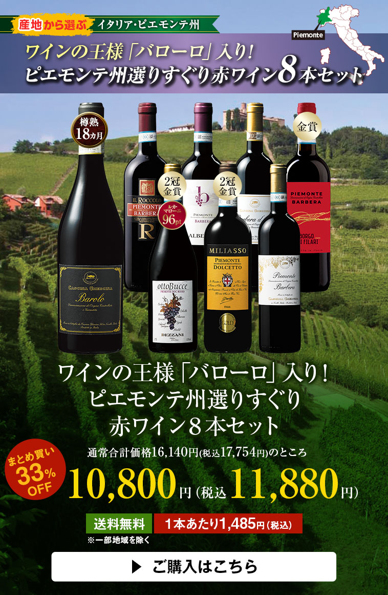 ワインの王様「バローロ」入り!ピエモンテ州選りすぐり赤ワイン8本セット