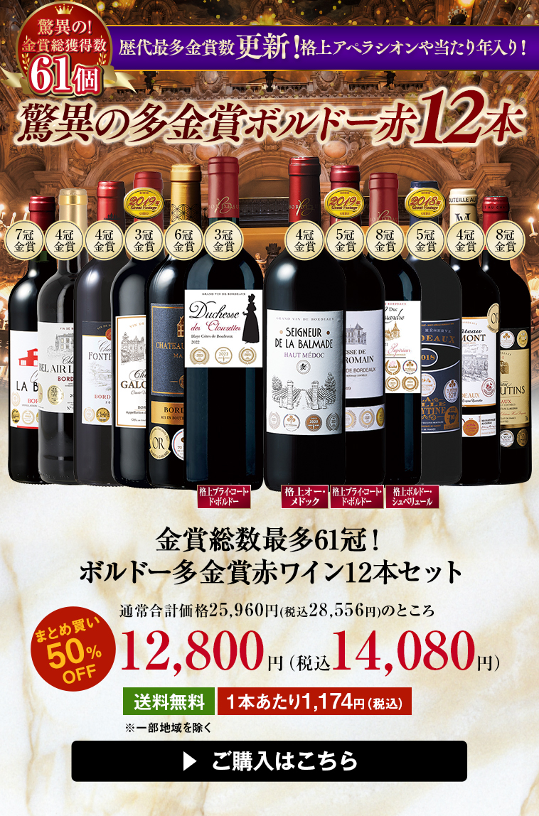 金賞総数最多61冠!ボルドー多金賞赤ワイン12本セット