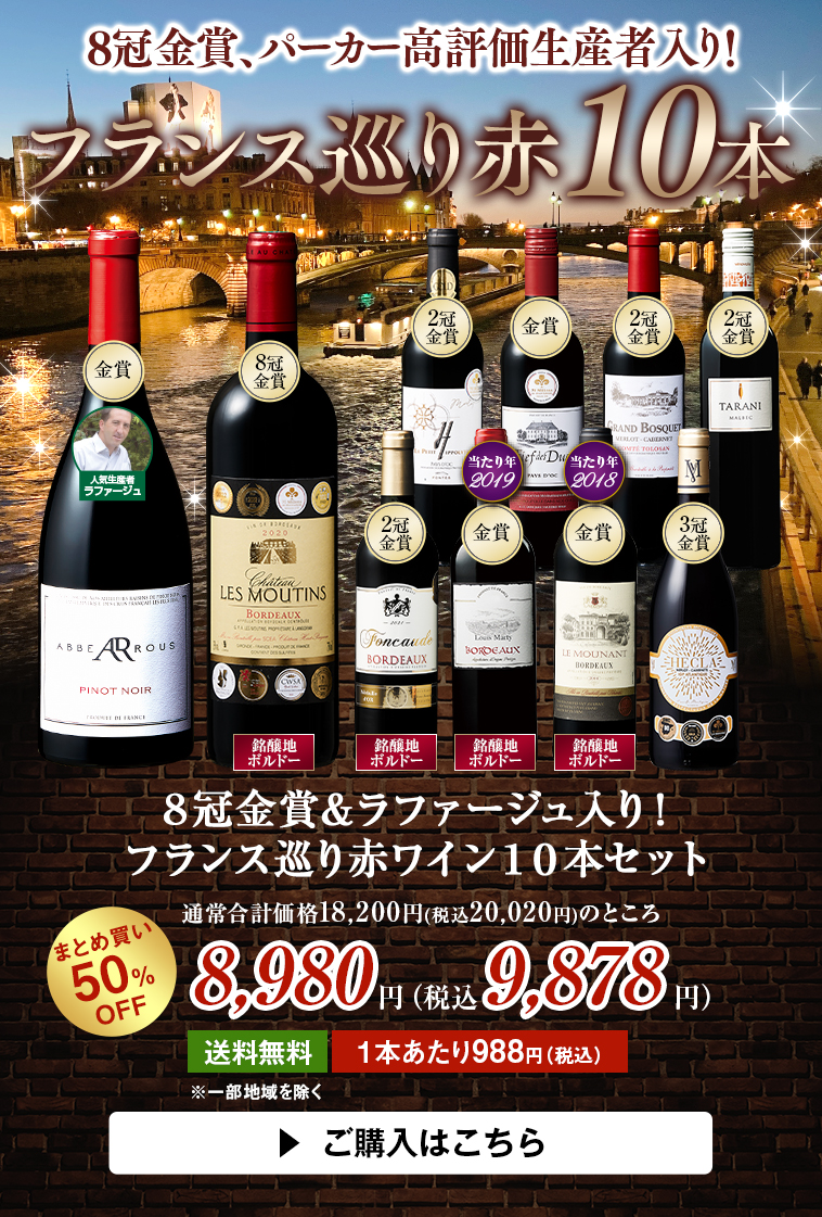 8冠金賞&ラファージュ入り!フランス巡り赤ワイン10本セット