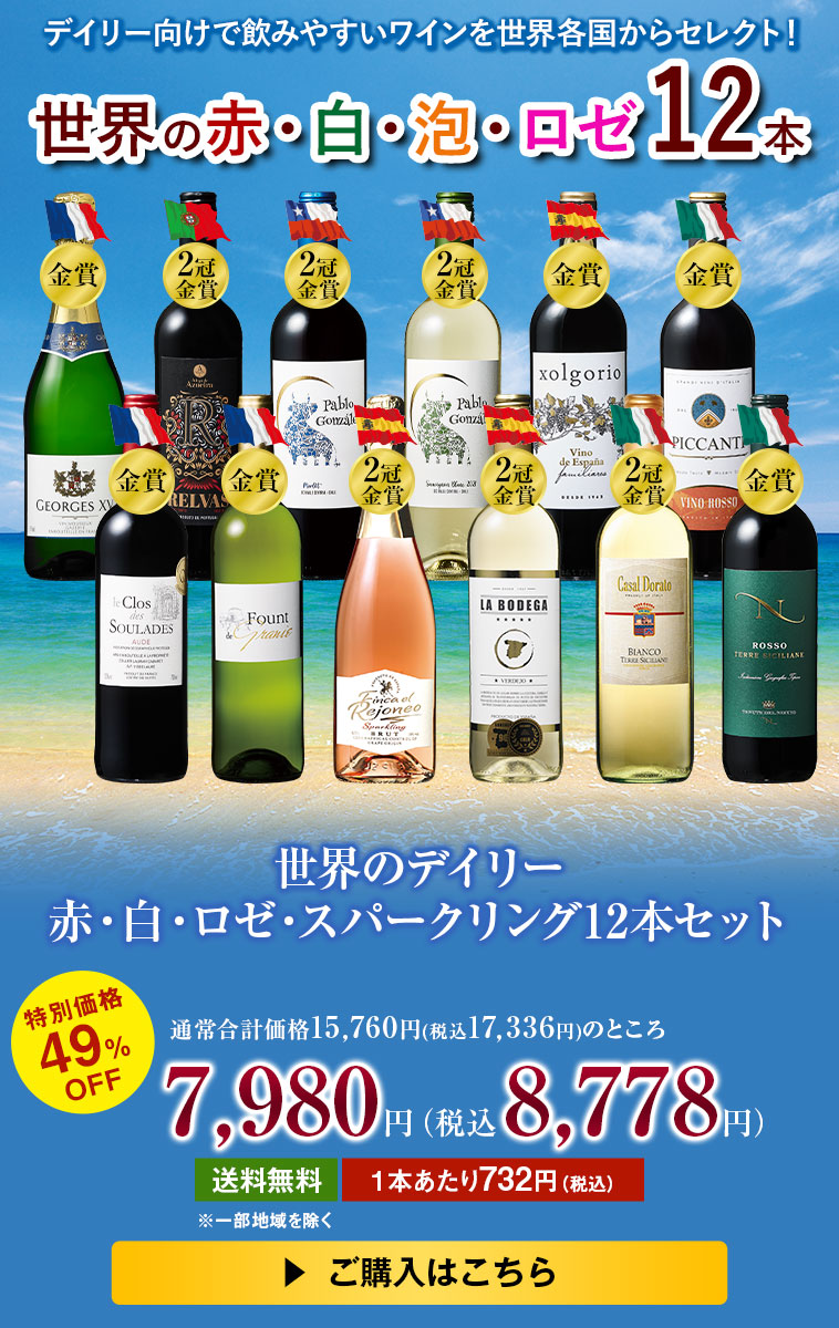 世界のデイリー赤・白・ロゼ・スパークリング12本セット