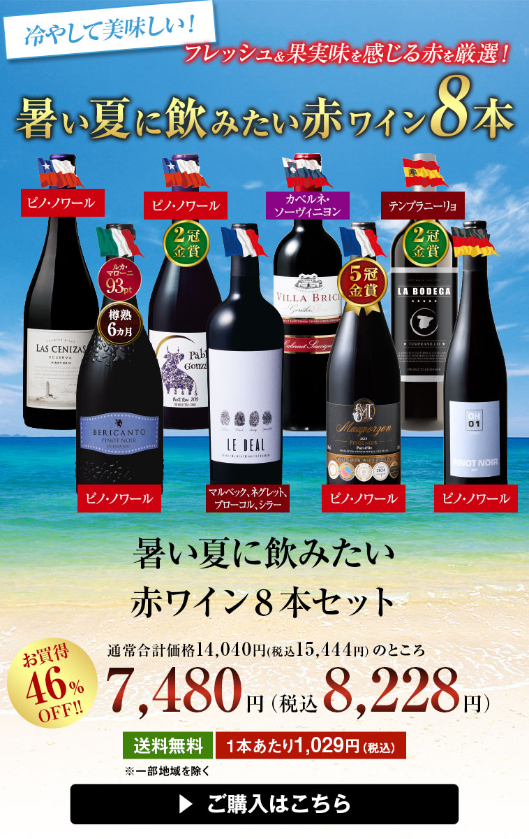 暑い夏に飲みたい赤ワイン8本セット