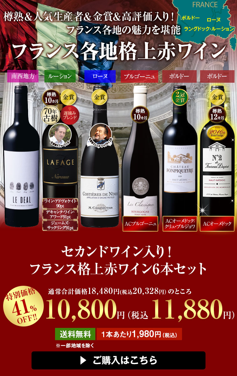 セカンドワイン入り!フランス格上赤ワイン6本セット