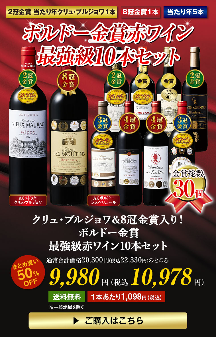クリュ・ブルジョワ&8冠金賞入り!ボルドー金賞最強級赤ワイン10本セット