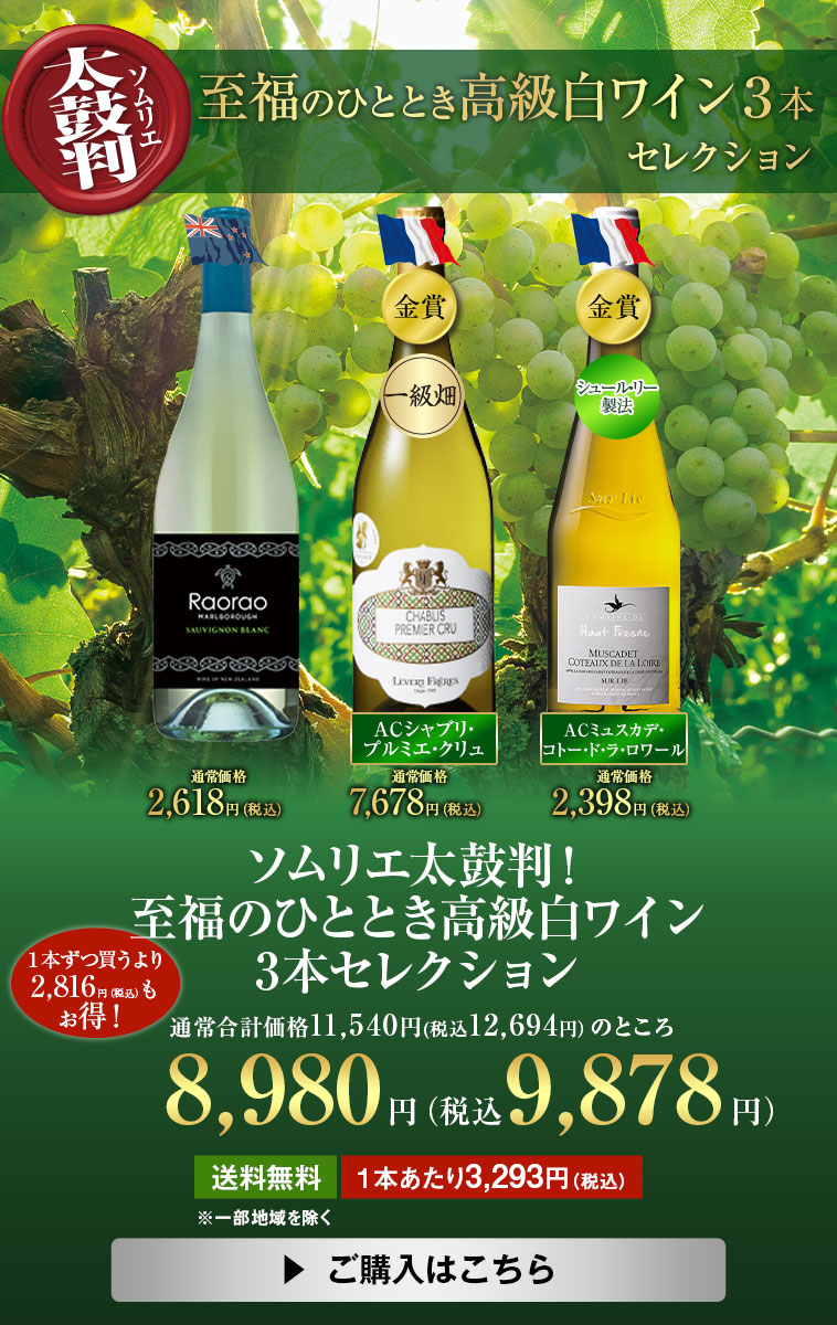 ソムリエ太鼓判!至福のひととき高級白ワイン3本セレクション