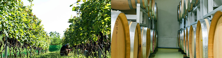 良いワインを造るには、良いぶどうが不可欠という考えのもと、自社でぶどう栽培を行い、良質なぶどう作りに努めています。