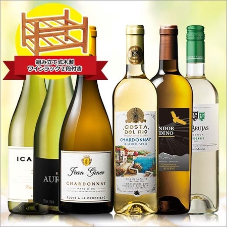 【ワインラック2段付】シャルドネ好き必見!世界6ヵ国のシャルドネを飲み比べ6本セット!